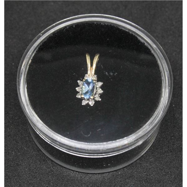 10K GOLD 1.5CM BLUE TOPAZ AND DIAMOND PENDANT