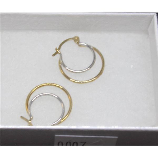 10K TWO-TONE DOUBLE LOOP HOOP EAR RINGS