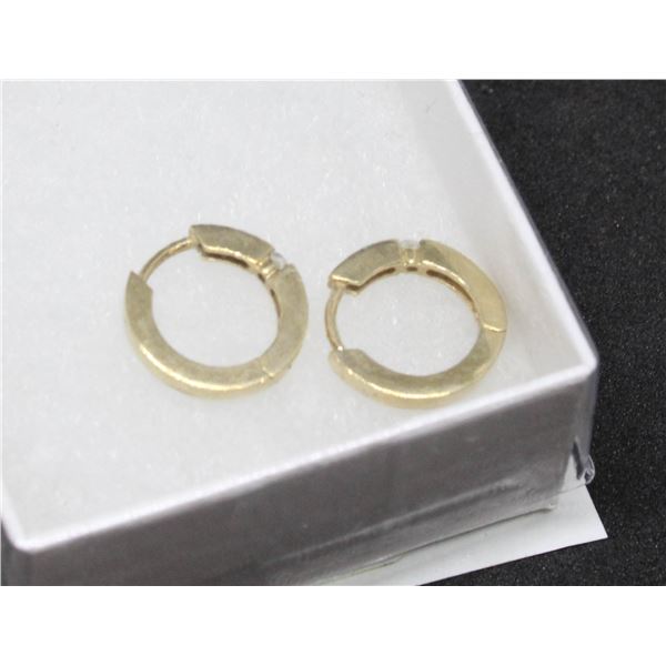 10K YELLOW GOLD WITH 1 DIAMOND SET IN CENTER OF EACH HOOP.