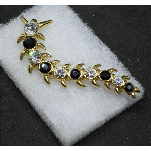 STYLIZED JEWELED CENTEPEDE. GOLD TONE.