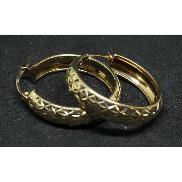 LARGE 1'' 10K GOLD HOOP EAR RINGS DIAMOND PATTERN