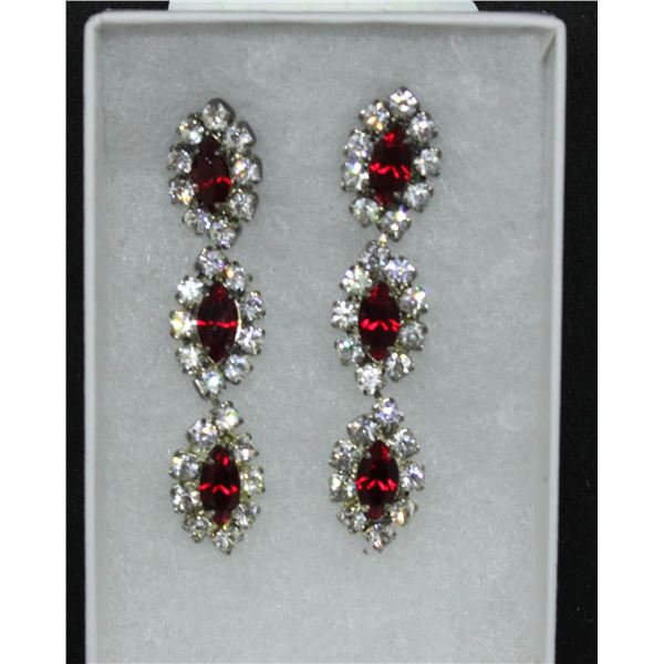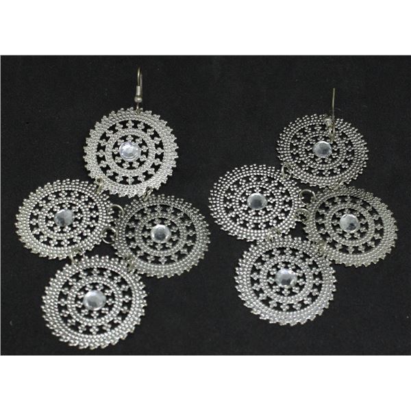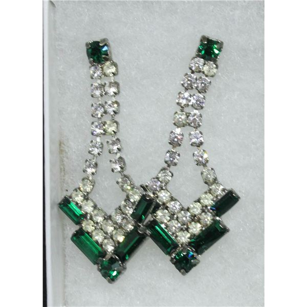 LARGE 4 INCH LONG COSTUME EARRINGS WITH STONES
