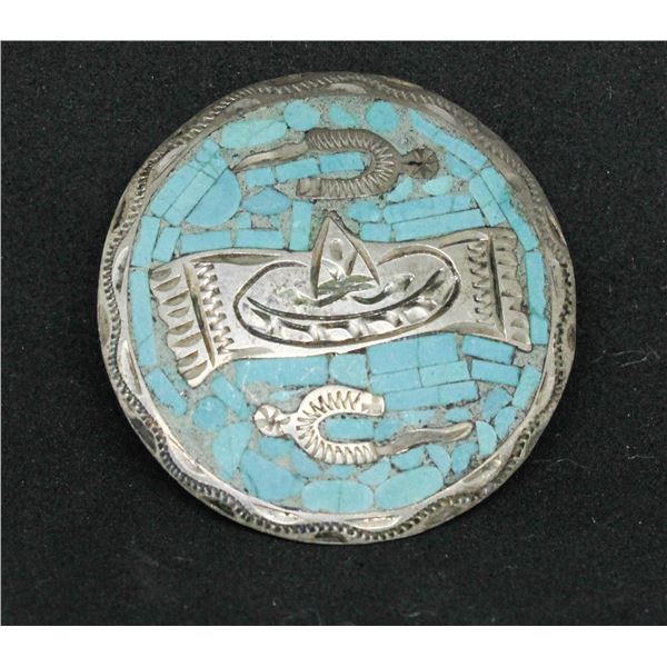 .925 STERLING SILVER BROOCH WITH TOURQUOISE
