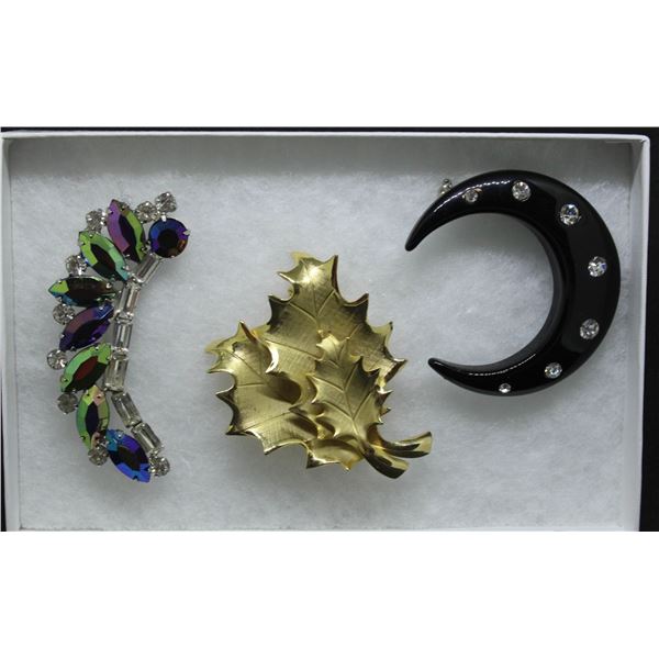 LOT OF 3 VINTAGE COSTUME BROOCHES MIXED