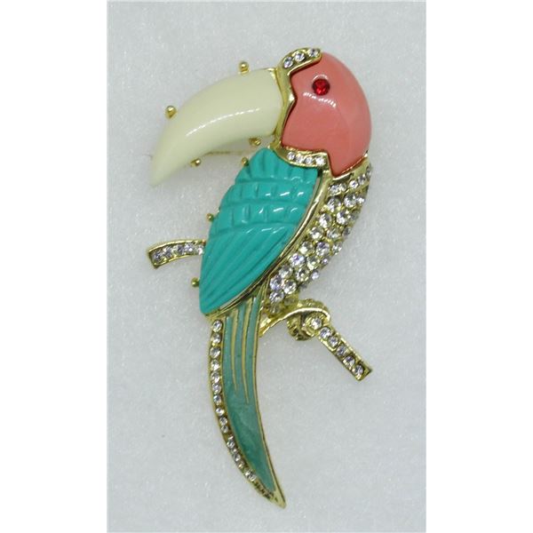 VINTAGE ENAMEL COSTUME BROOCH WITH BIRD