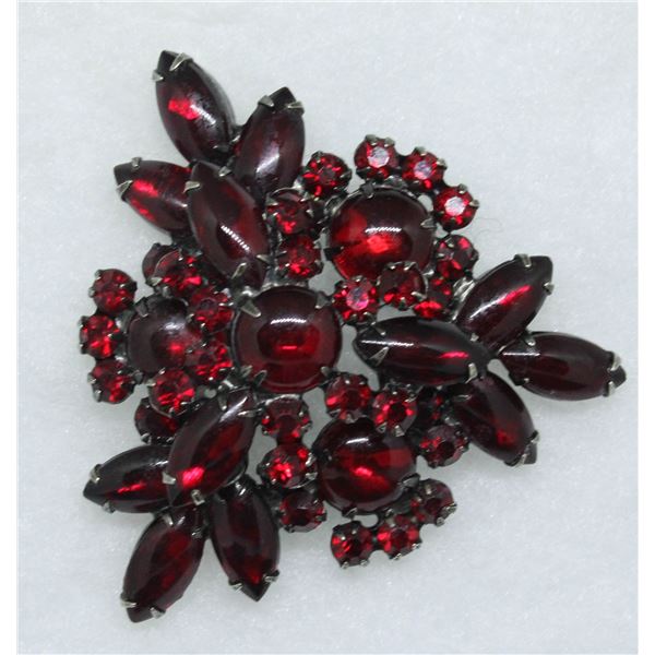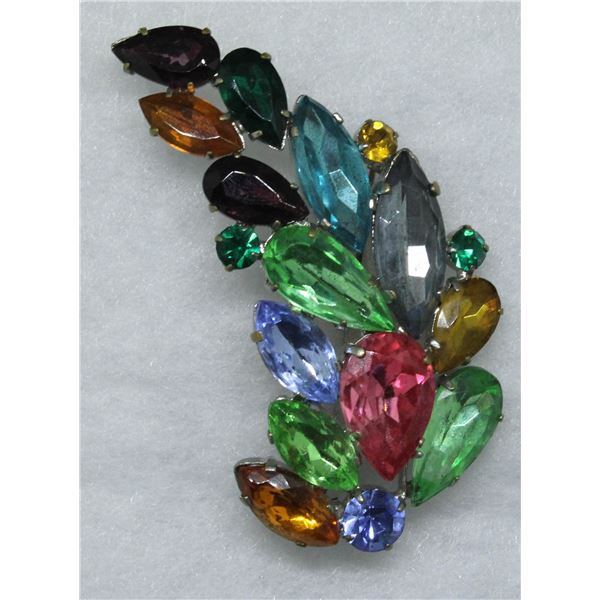 LARGE 3'' MULTICOLOR STONE VINTAGE COSTUME BROOCH