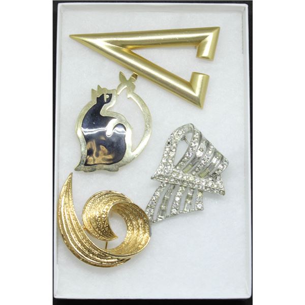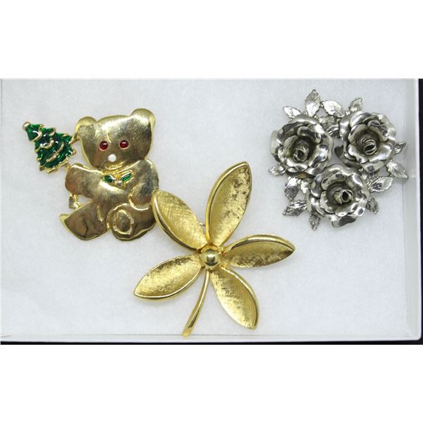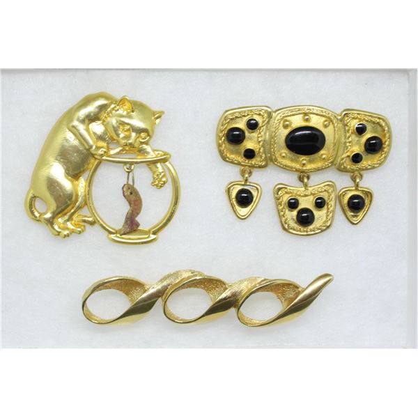 LOT OF 3 VINTAGE GOLD TONE COSTUME BROOCHES