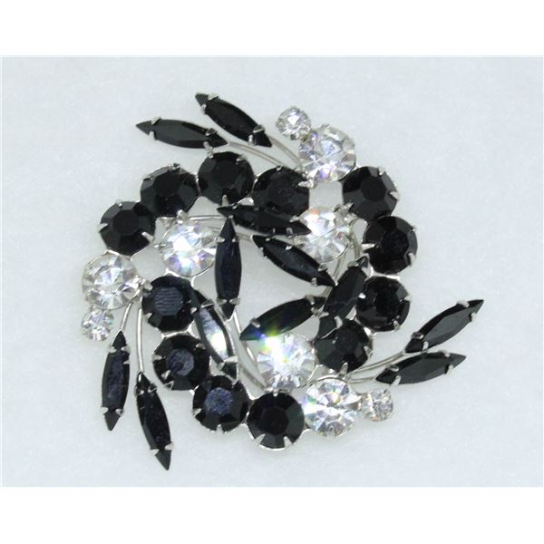 2'' BLACK AND WHITE MULTI-STONE COSTUME BROOCH