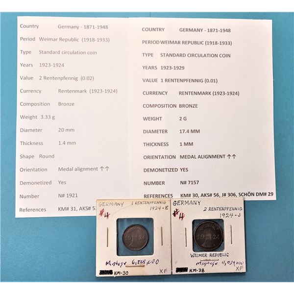 1924 E1 - 2 RENTENPFENNING & 1924 JD - 1 RENTENPFENNING .
