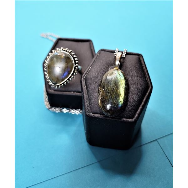 PENDANT, RING IS SIZE 9 AND PENDANT IS ON 17" STAINLESS STEEL (HYPOALLERGENIC) CHAIN.