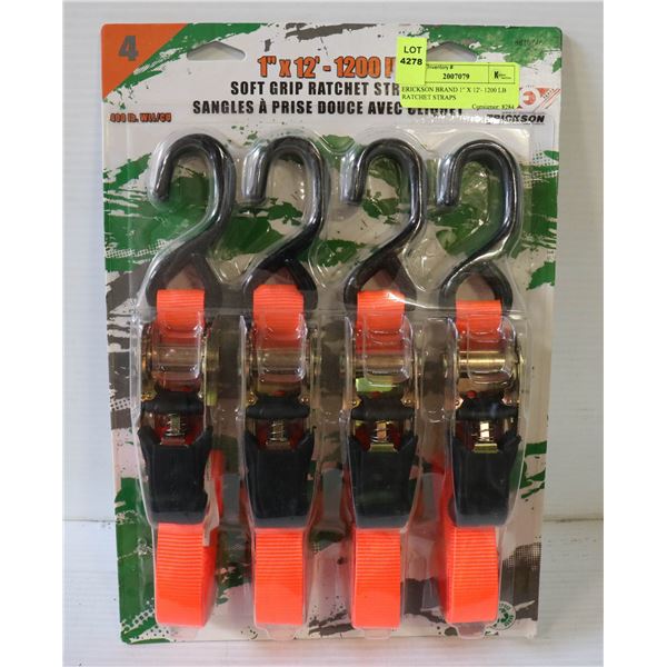 ERICKSON BRAND 1" X 12'- 1200 LB RATCHET STRAPS