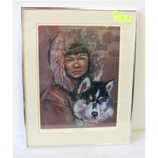 "INNOCENCE" INUIT CHILD WITH HUSKY SIGNED IN PEN