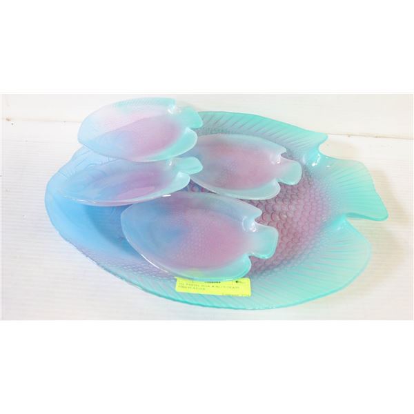 12) PASTEL PINK & BLUE GLASS FISH PLATTER