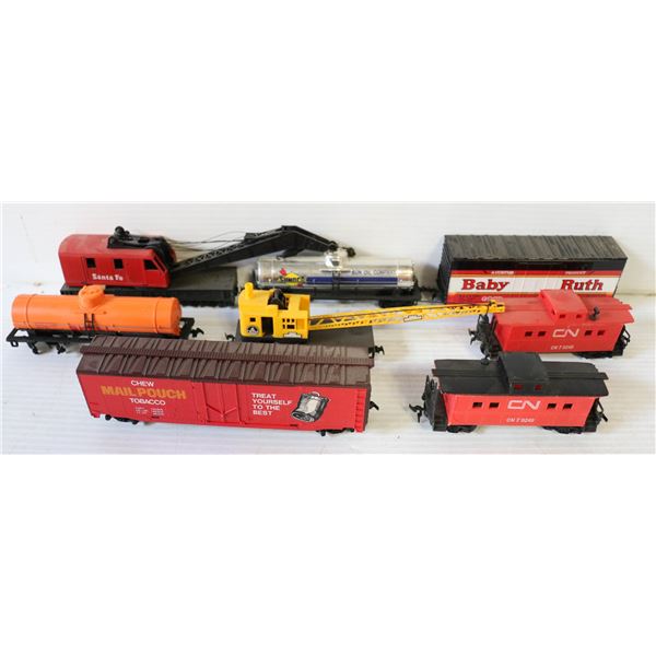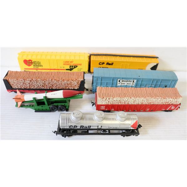 FLAT OF VARIOUS HO SCALE TRAIN CARS