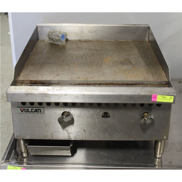 VULCAN COUNTER TOP GRIDDLE. MODLE# VCRG24-NIC, NATURAL GAS CONVERTABLE TO PROPANE, LARGE 4.5 QUART GREASE CAN, 3/4 GAS CONNECTION, 50,OOO BTU. 24X2
