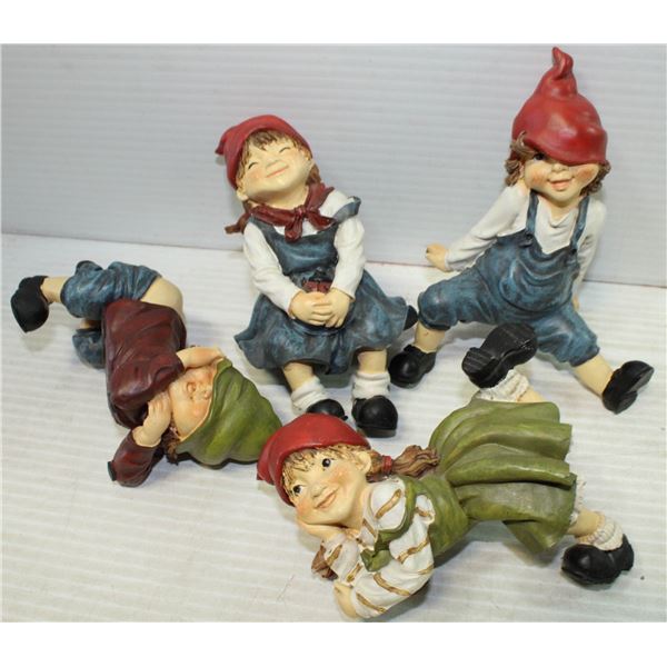 SET OF 4 VINTAGE HAPPY ELF SHELF SITTERS
