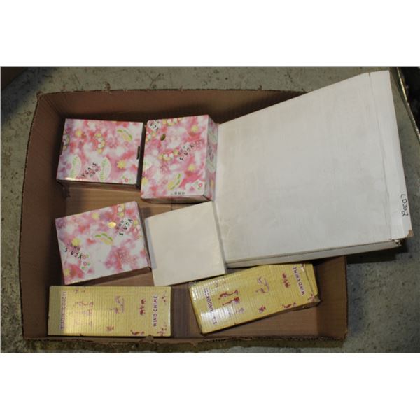BOX OF CHIMES, GONGS, AND DECOR ITEMS EACH BOX WAS