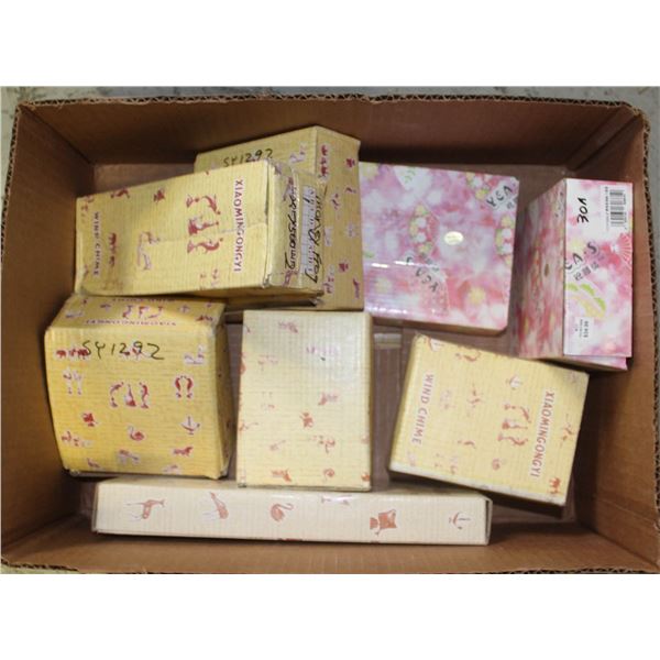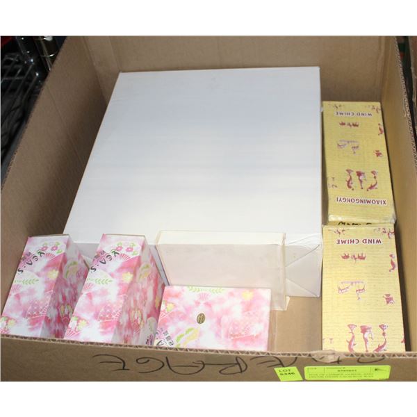 BOX OF CHIMES, GONGS, AND DECOR ITEMS EACH BOX WAS