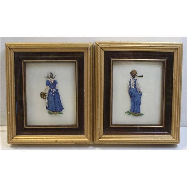 VINTAGE 2 PETITE POINT ART APPROX 5" X 7"