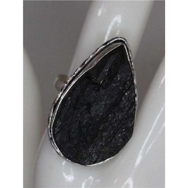 #62-NATURAL BLACK TOURMALINE RING SIZE 9