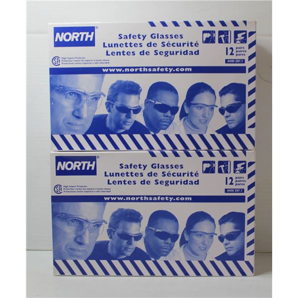 2 BOXES OF NORTH TINTED SAFETY GLASSES 24 PAIRS