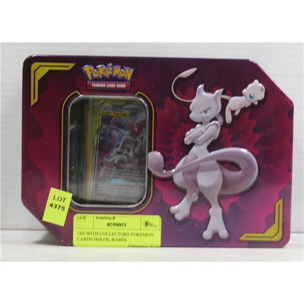 TIN WITH COLLECTORS POKEMON CARDS HOLOS, RARES