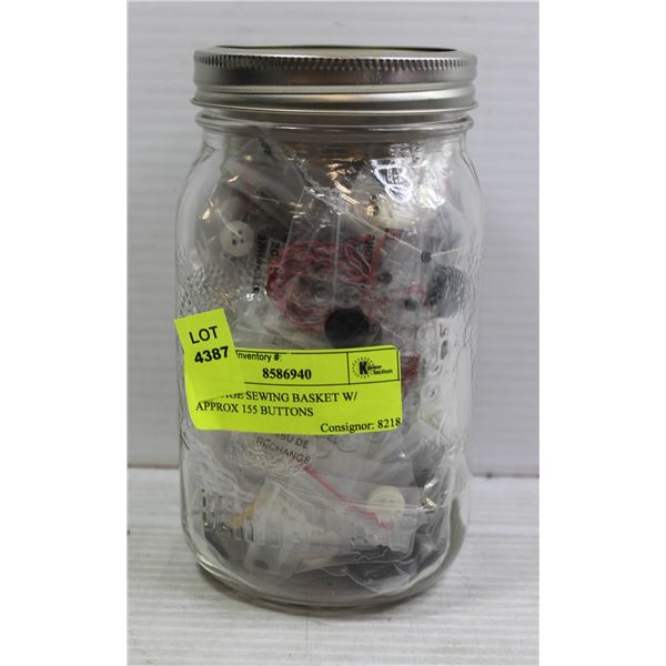 VINTAGE SEWING BASKET W/ APPROX 155 BUTTONS