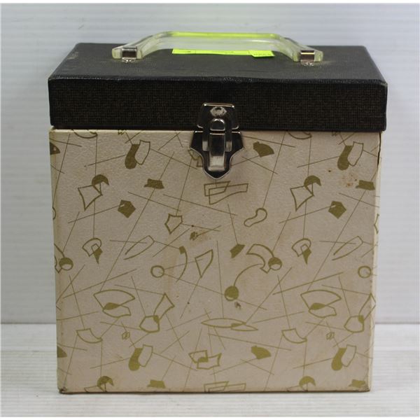 BOX OF OLD JUKEBOX RECORDS IN RECORD CASE