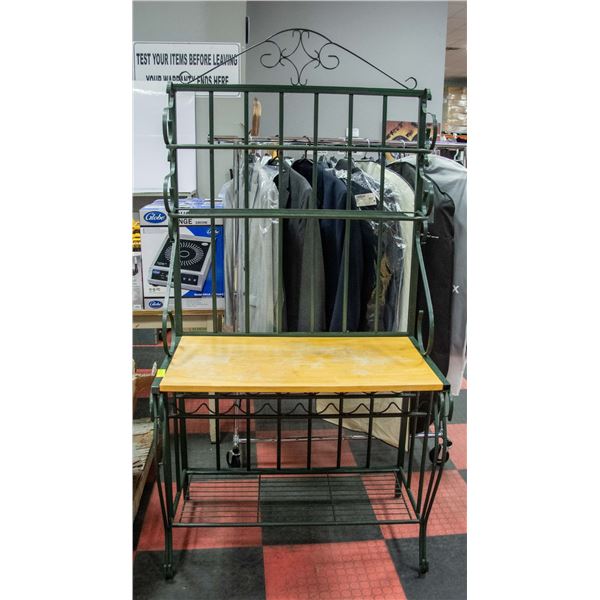 DECORATIVE METAL AND WOOD BAKERS RACK