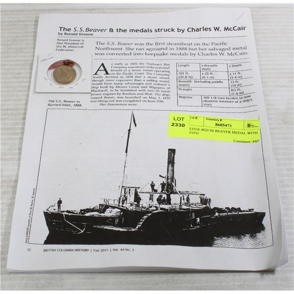 EDGE #ED SS BEAVER MEDAL WITH INFO