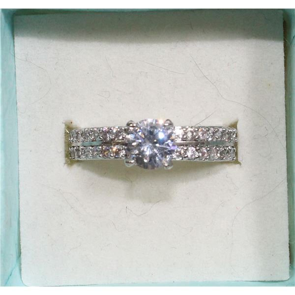 SILVERTONE RING WITH CZ STONES