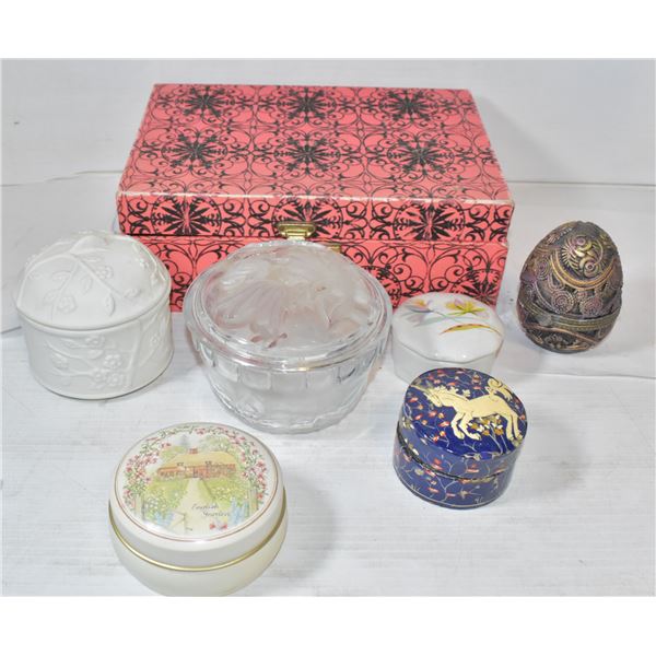 LOT OF 6 TRINKET BOXES PLUS VINTAGE JEWLERY BOX