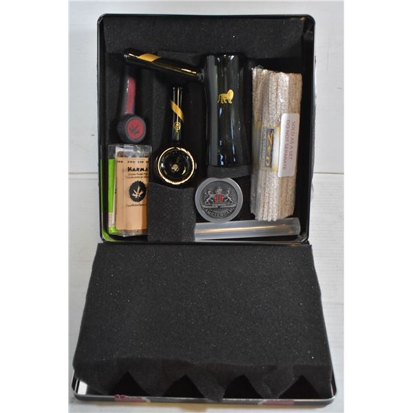 C/W GRINDER, PIPE CLEANERS AND ROLLING MACHINE. LARGE GLASS PIPE USED TWICE, SMALL GLASS PIPE NEVER USED