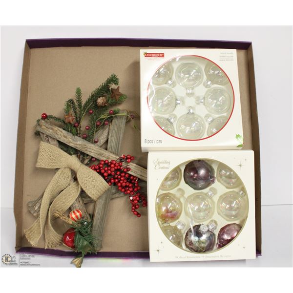 NEW 2 BOXES VINTAGE XMAS BALLS,WREATH OF BERRIES +2397 - NEW 2 BOXES VINTAGE XMAS BALLS,WREATH OF BERRIES +