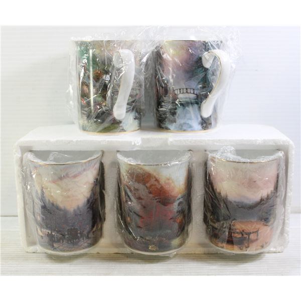 KINKADES JOY OF THE SEASON PORCELAIN MUG COLLECTION WITH COAs - INCLUDES SCENIC MUGS FOR OCT, NOV, DEC, JAN AND FEB