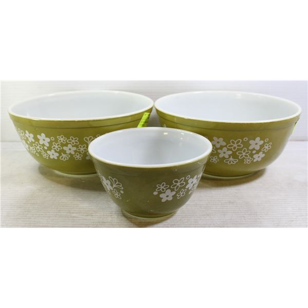 SET OF 3 PYREX MIXING BOWLS (2 X 8.5"-DIAM