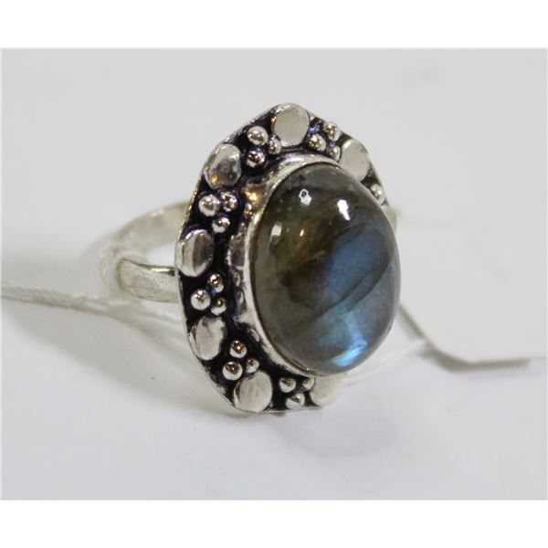 SILVER LABRADORITE(2.95CT) RHODIUM PLATED RING (~WEIGHT 4.05G), SUGGESTED RETAIL VALUE $160