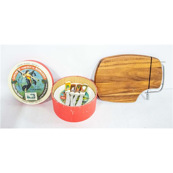 FRENCH VINTAGE CAMEMBERT CHEESE BOARD AND PLATES