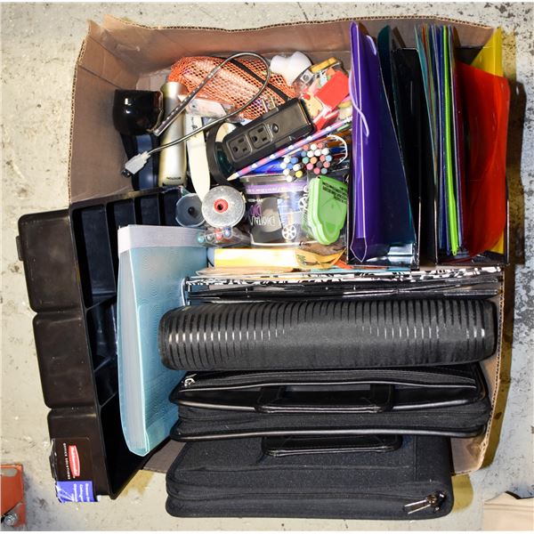 BOX FULL OF OFFICE SUPPLIES INCL. LEATHER