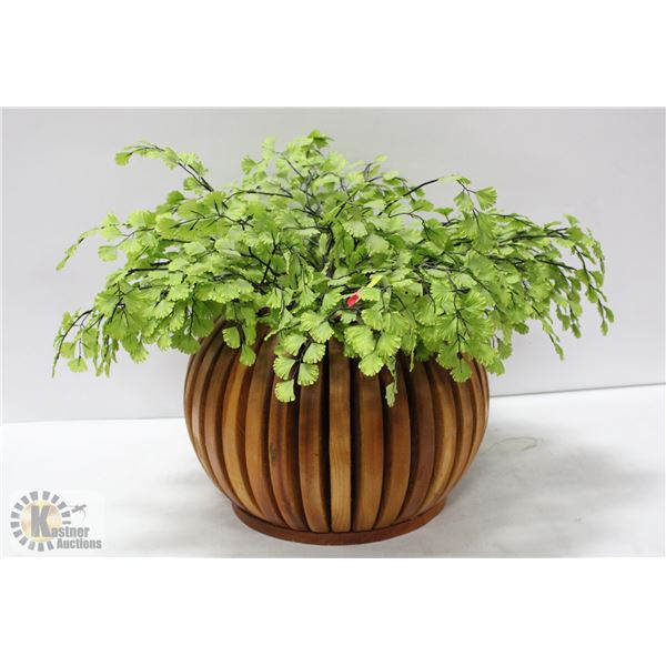 ARTIFICIAL PLANT IN ROUND WOODEN POT 17" TALL