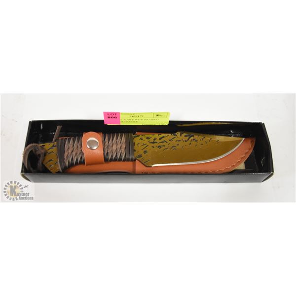 HUNTING KNIFE WITH BRAIDED LEATHER HANDLE