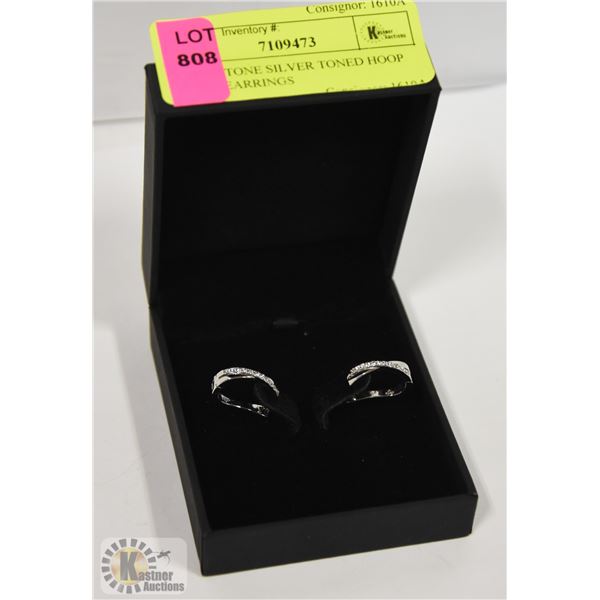 RHINESTONE SILVER TONED HOOP STYLE EARRINGS
