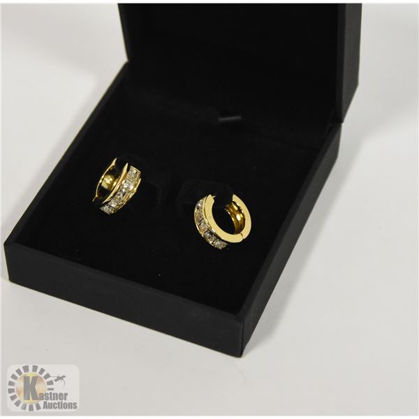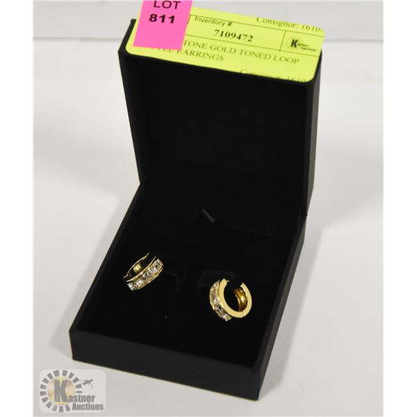 RHINESTONE GOLD TONED LOOP STYLE EARRINGS
