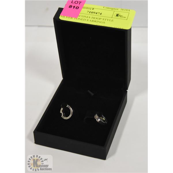 CUBIC ZIRCONIA HOOP STYLE SILVER TONED EARRINGS