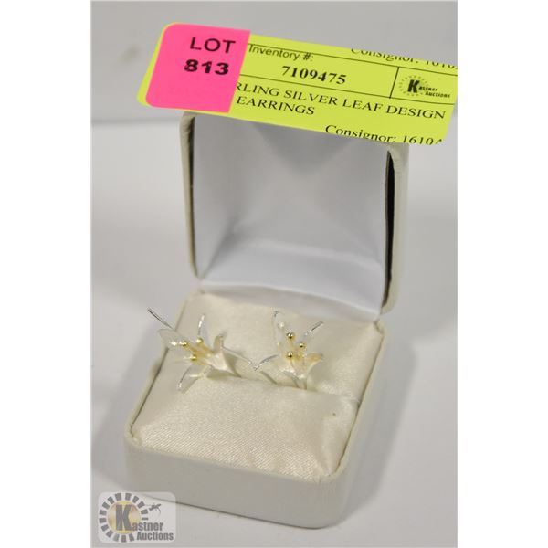 .925 STERLING SILVER LEAF DESIGN DANGLE EARRINGS