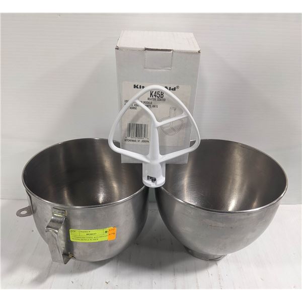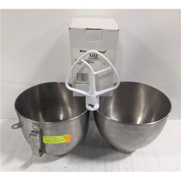 2 STAINLESS STEEL KITCHENAID MIXING BOWLS W/ NEW