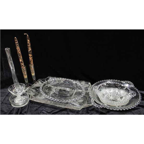 FLAT OF CRYSTAL & GLASS ITEMS VINTAGE