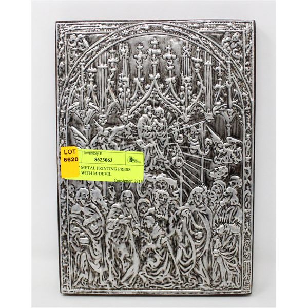 9" X 7" METAL PRINTING PRESS PLATE WITH MIDEVIL