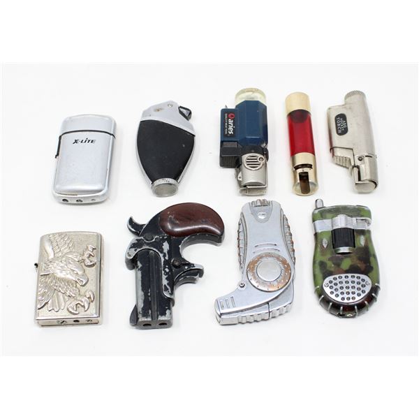 8 OLDER BUTANE LIGHTERS GUN & MORE