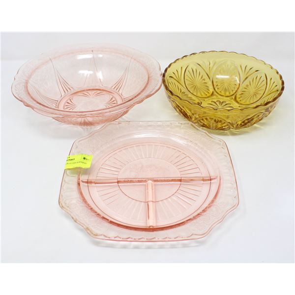 3 X DEPPRESSION GLASS SERVING PLATES